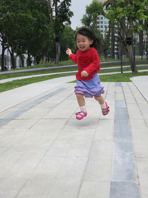 例如,他很喜歡爬樓梯,但我們是禁止他爬的,平常都會用障礙物擋住上樓梯的地方,但是有時候障礙物(腳踏車)被乖姊姊騎走了,勳勳就會有機可趁,看到我靠近他時,他會用飛快的速度爬樓梯,他知道我要過去把他抓下來。
